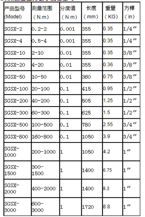 SGSX數(shù)顯扭力扳手規(guī)格型號(hào)